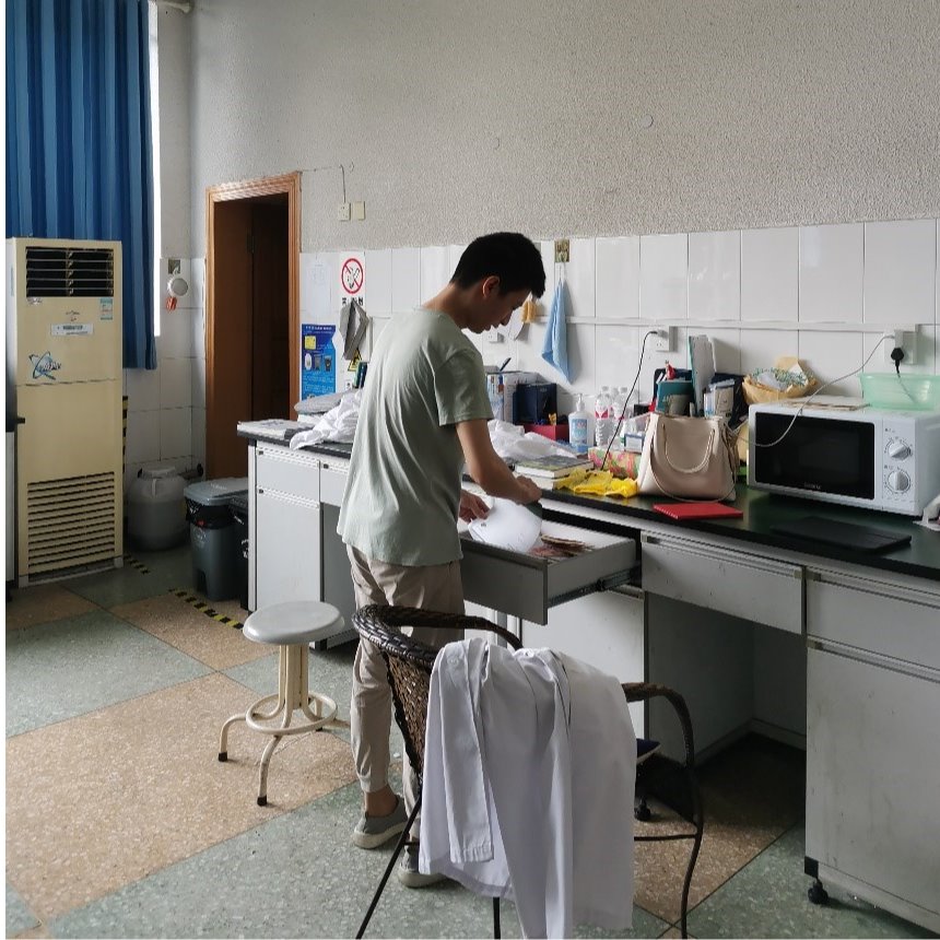 活动第二部分是个人物品清理和交接,毕业生党员们分散行动,到自己所属的实验室清理自己的试验试剂、实验材料及其他物品。将还具有实验价值的实验试剂以及使用方法交接给师弟师妹们,给他们讲解宝贵的经验。同时在交接的过程中着重给师弟师妹们强调实验室仪器和试剂的安全使用。