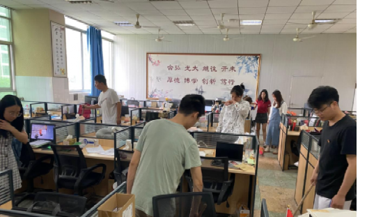 研究生学习室。毕业生党员们明确分工,分小组进行。认真擦洗学习室的窗台,拖洗学习室地面,将学习室桌面上的废旧物品整理归类,丢弃快递纸箱,仔细检查各个角落,排除学习室安全隐患。