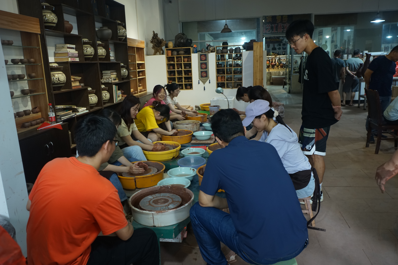 2名陶瓷专业毕业生在此创业。工作室创始人管永双老师和徒弟对陶艺创新及新工艺探究等进行了深入讲解,使大家进一步增强了对非物质文化遗产的认识与理解,同志们不仅体会到了制陶工艺繁琐的步骤以及状况多样的烧制过程,更是深深的为中华民族非物质文化遗产感到自豪。