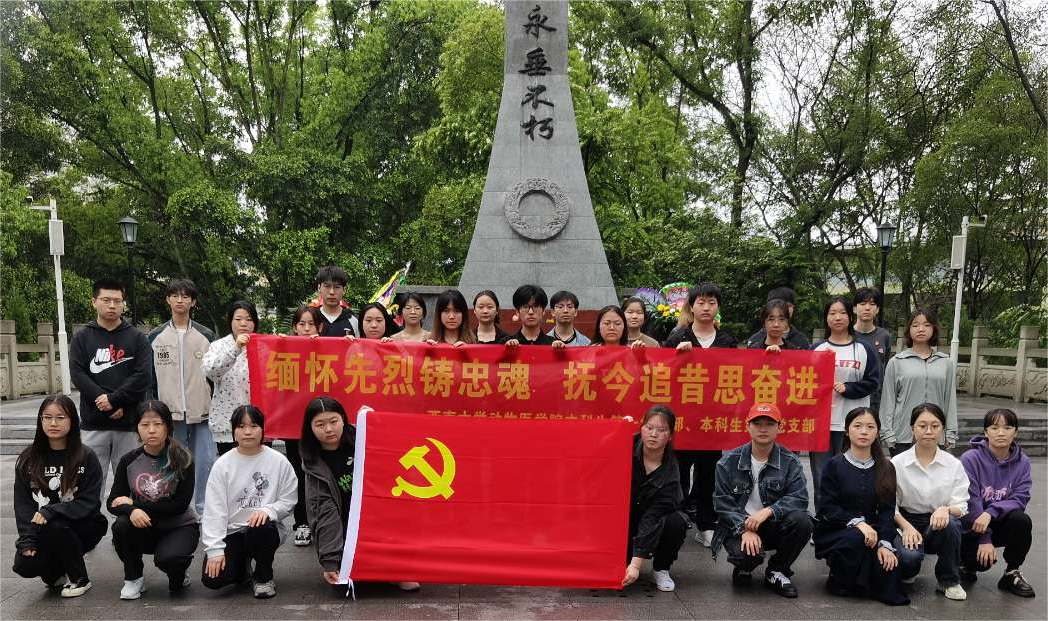 本科生第二党支部联合本科生第一党支部前往重庆市荣昌区海棠公园烈士陵园开展清明祭祀活动。党员和入党积极分子代表31人参加此次活动。