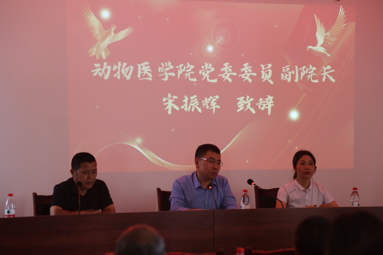 党委委员、副院长宋振辉致辞,他鼓励同学们利用动物医学专业的知识,充分发挥自身专业优势,积极为当地百姓提供农业技术支持和服务,以助力乡村振兴战略的实施。