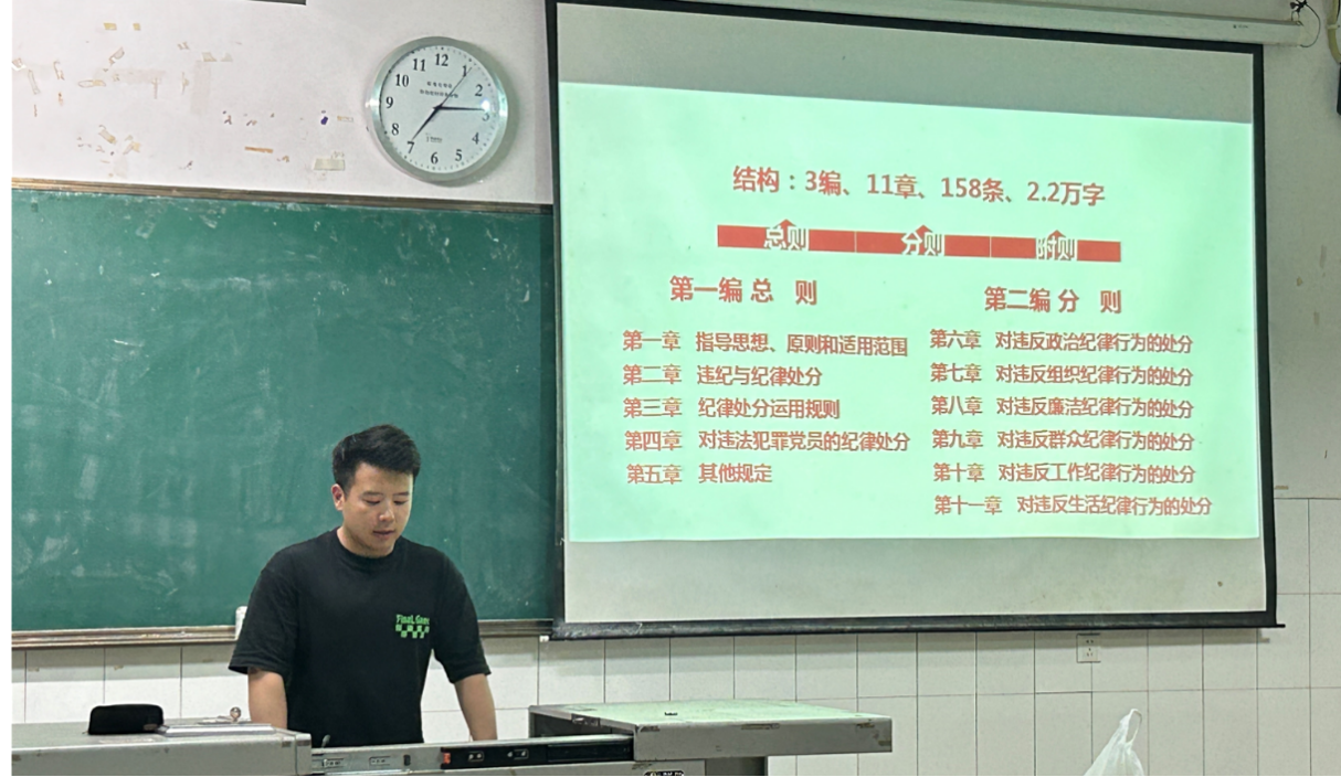 6月19日晚19:00,为帮助低年级同志更好地规划未来,支部在5202召开毕业生党员座谈会。座谈会第一环节为毕业生党员讲微党课,何政科同志结合实际,与支部成员分享了他对《中国共产党纪律处分条例》的认识与思考,分析了其重要性和现实意义。同时,他提出作为研究生党员,要在严格遵守党纪国法的同时,积极发挥先锋模范作用!