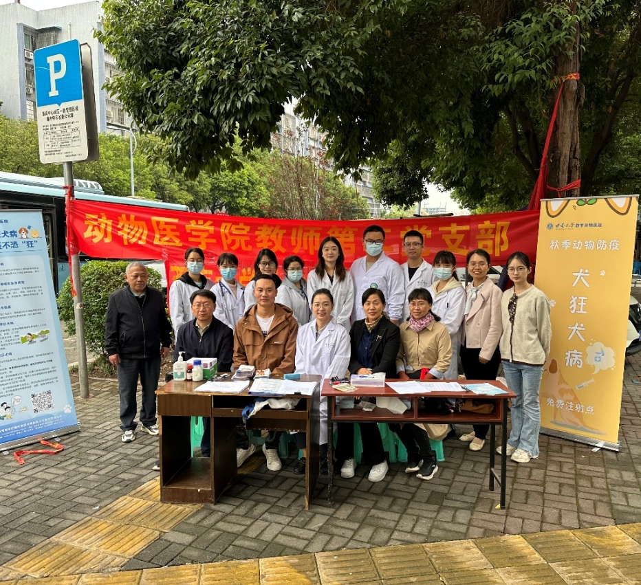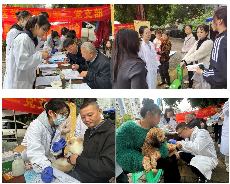 教学动物医院骨干医生和兽医学研究生,与重庆市北碚区农业农村委员会合作,在蔡家汪家堡社区开展了犬只狂犬病疫苗免费接种活动。