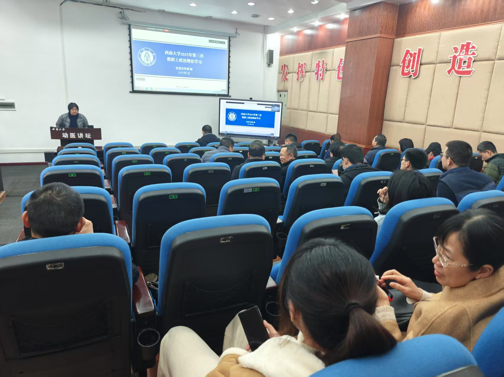 在荣昌、北碚同步召开2025年第三次教职工政治理论学习,集中学习了习近平总书记2025年全国两会期间重要讲话精神、2025年全国两会精神。