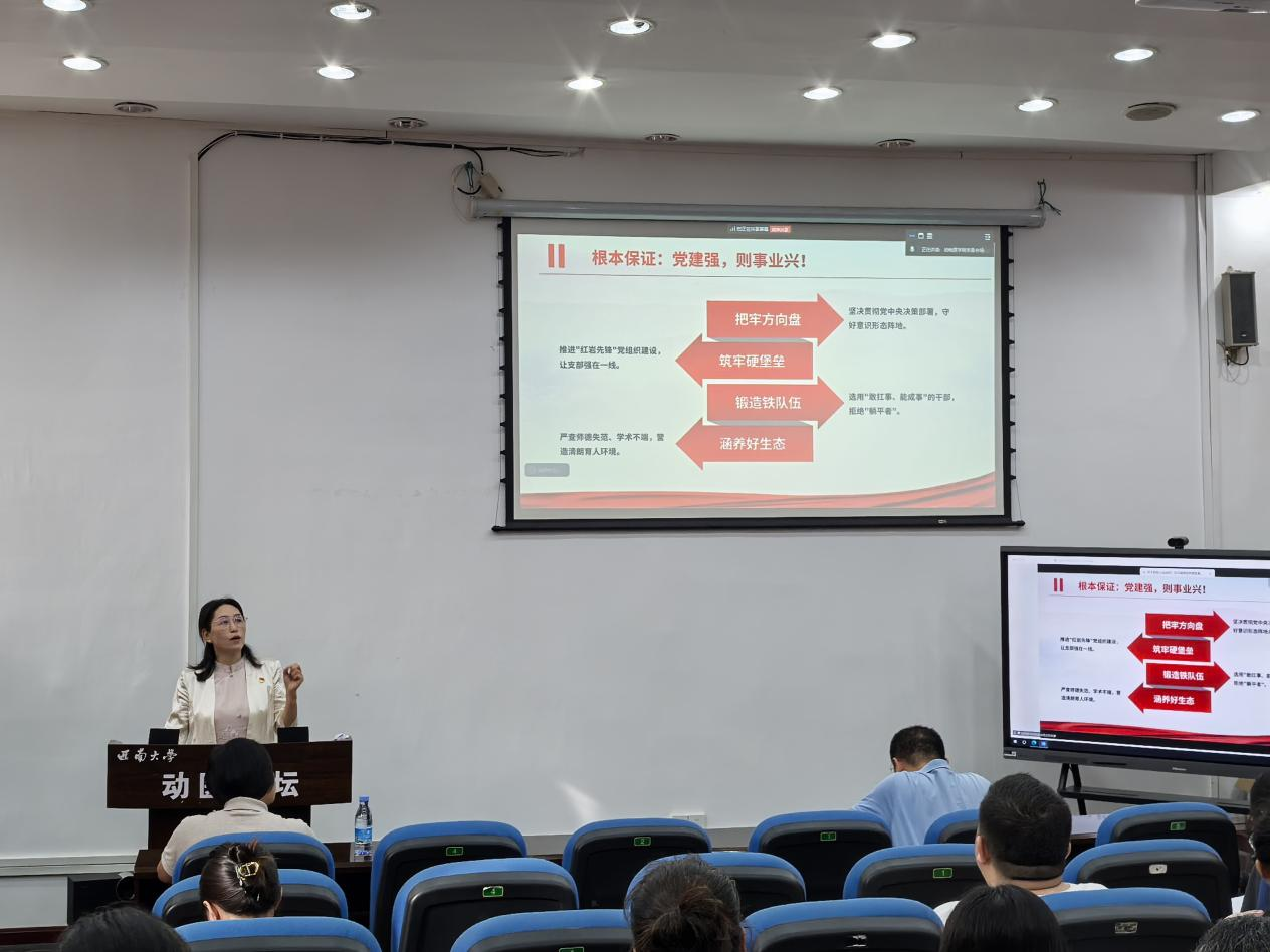 实际,将大会要求转化为具体行动。她号召大家以"矢志一流"的雄心锚定目标,用"改革创新"的锐气破解难题,凭"以质图强"的实干再创辉煌,为建成特色鲜明的世界一流大学和教育强国建设贡献动医人的智慧和力量。