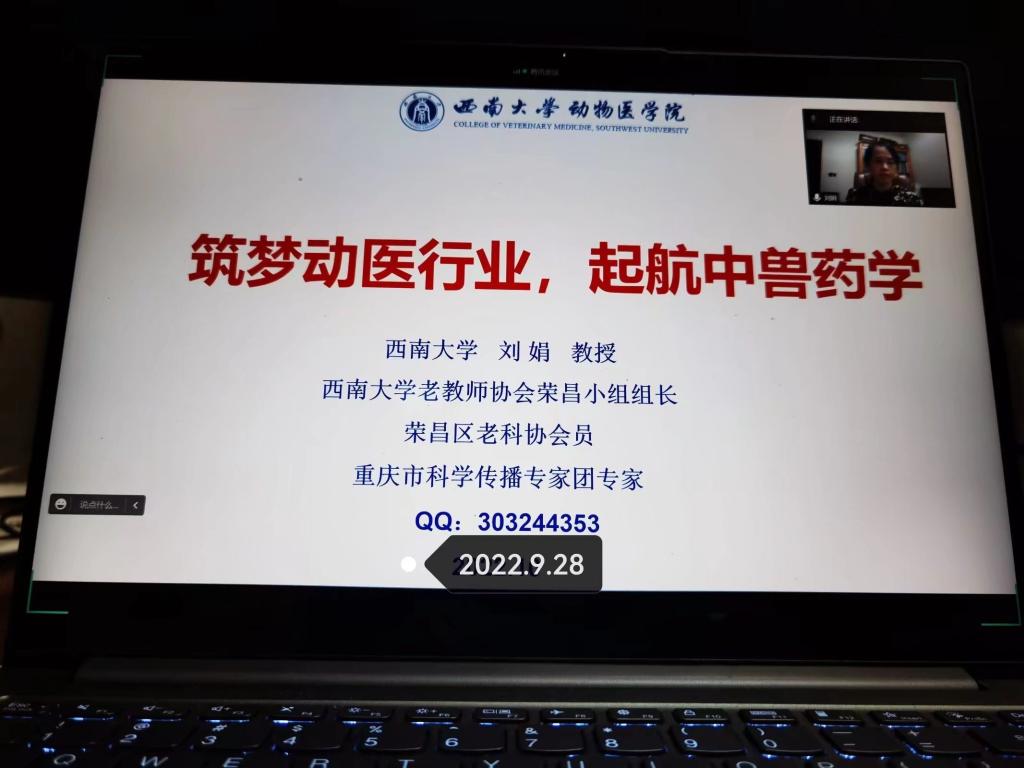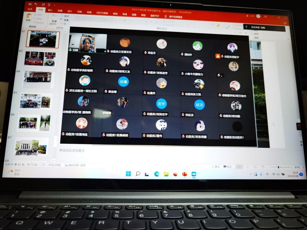 为了进一步深化大一新生对所学专业的认识,掌握最新行业发展动态。2022年9月28日和10月5日19:00,动物医学类专业开设的《学科导论》课程组邀请了AV中文中兽医药退休专家刘娟教授、朱兆荣副教授分别为2022级全体动物医学类专业学生做了题为“逐梦动医行业,启航中兽药学”和“从社会变迁看针灸发展方向”的专题报告,报告采用线上与线下结合的方式进行。报告由中兽医学系主任曹立亭副教授主持,AV中文