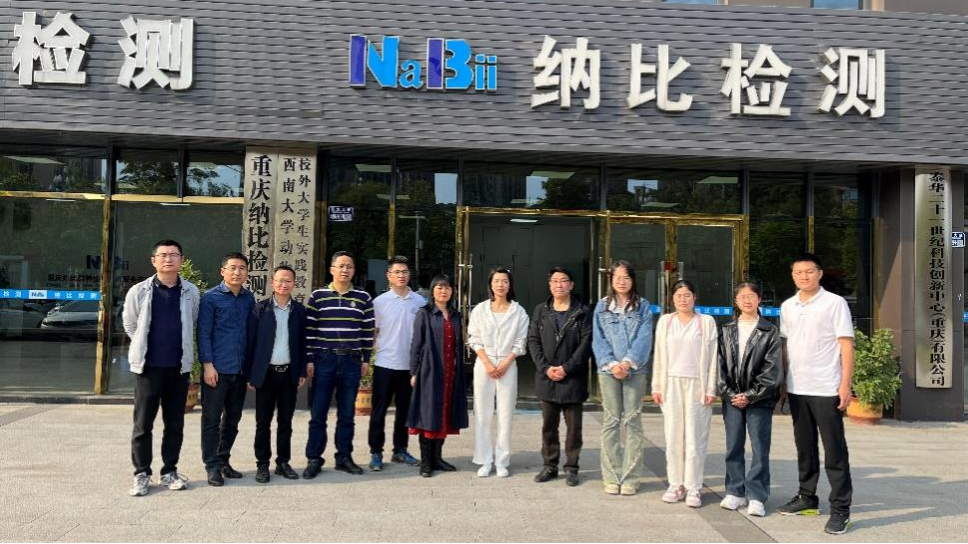 实习的学生进行了现场检查、和慰问,得到了重庆纳比微特检测技术服务有限公司刁洋娟总经理助理、重庆市畜牧科学研究院杨睿研究员的大力支持。刁经理在肯定实习同学表现的同时,热情邀请老师们参观了该公司装配先进的检测实验室。