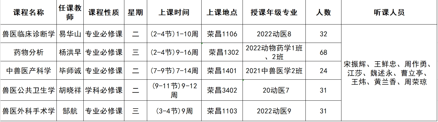 会集中组织听课评课,遵循“两性一度”标准,推选1门课程参加校级优质课程评选,请以下听课人员听课后将附件3优质课程评分表提交给杨燕老师,集中听课安排表参考如下:
