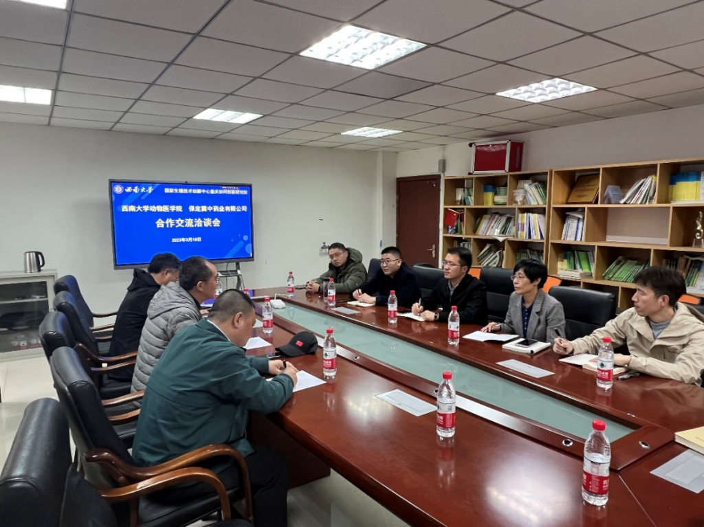 的基本情况、聚焦的科研领域和相关学科专业发展情况。张志宾介绍了保定冀中药业集团的基本情况,表示企业一直非常重视产品研发与创新,希望能与AV中文在科研成果转化、产品工艺优化、新兽药联合研发、特别是在防控猪蓝耳病中兽药制剂联合研发方面开展深度合作。随后,双方与会人员就相关技术人才需求、科研成果转化、助推兽药产业高质量发展等进行了深入交流。方仁东总结发言指出,目前AV中文正在依托国家生猪技术创新中心重庆协同创新研究院这一优势平台,开展生猪领域关键技术攻关,努力通过技术创新与成果转化服务生猪产业健康发展。希望保定冀中药业集团与AV中文