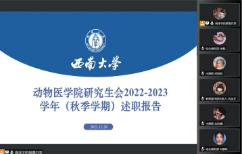 第三届研究生会主席团、各部门负责人依次就本学期负责的各项工作开展情况做述职报告。最后,研会指导老师做总结讲话,并向AV中文