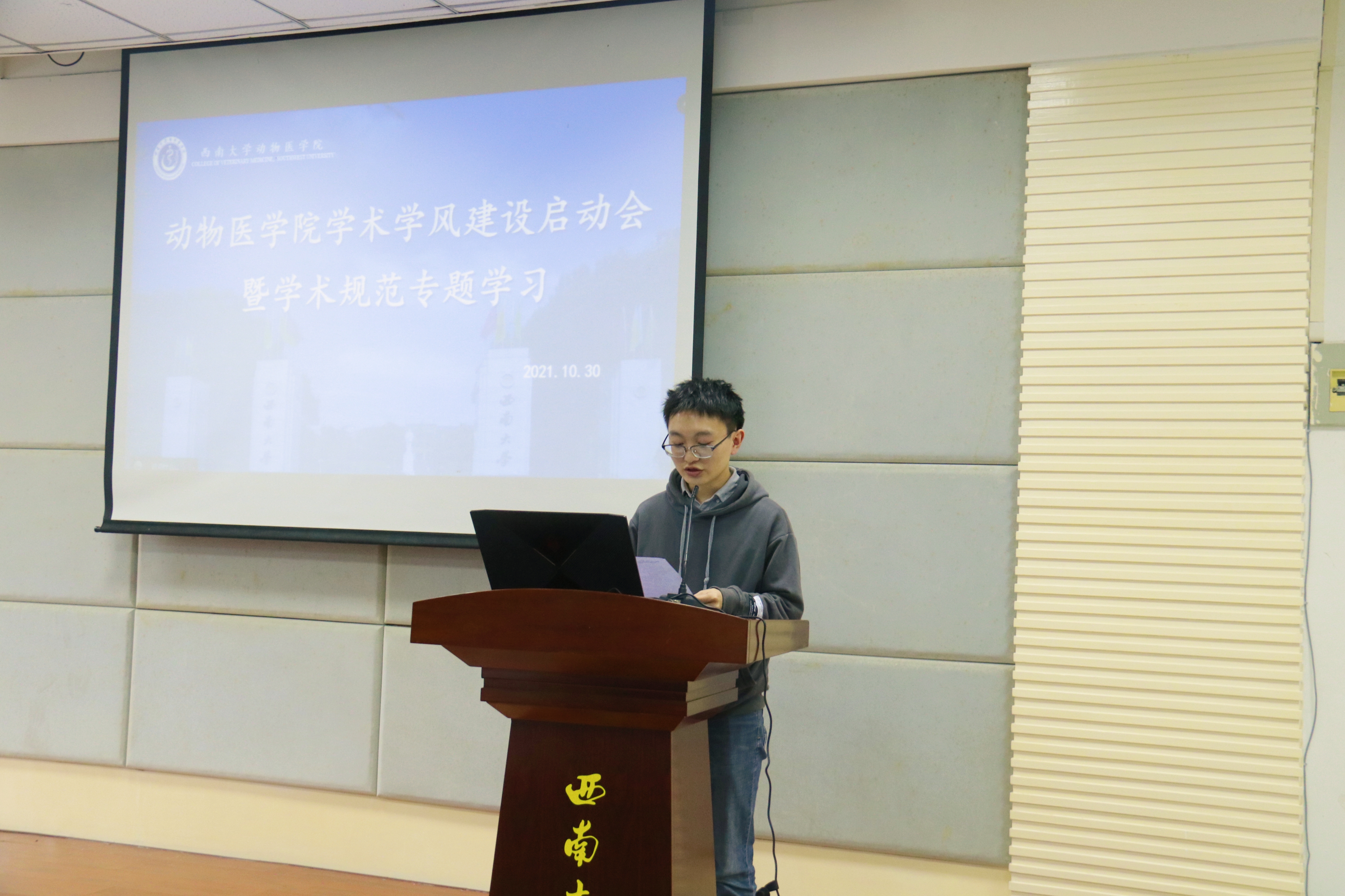 于2021年10月30日下午3点在北碚校区动物医院报告厅(线下)、荣昌校区3110报告厅(线上)顺利举行研究生学术学风建设活动启动会暨学术规范专题学习。AV中文