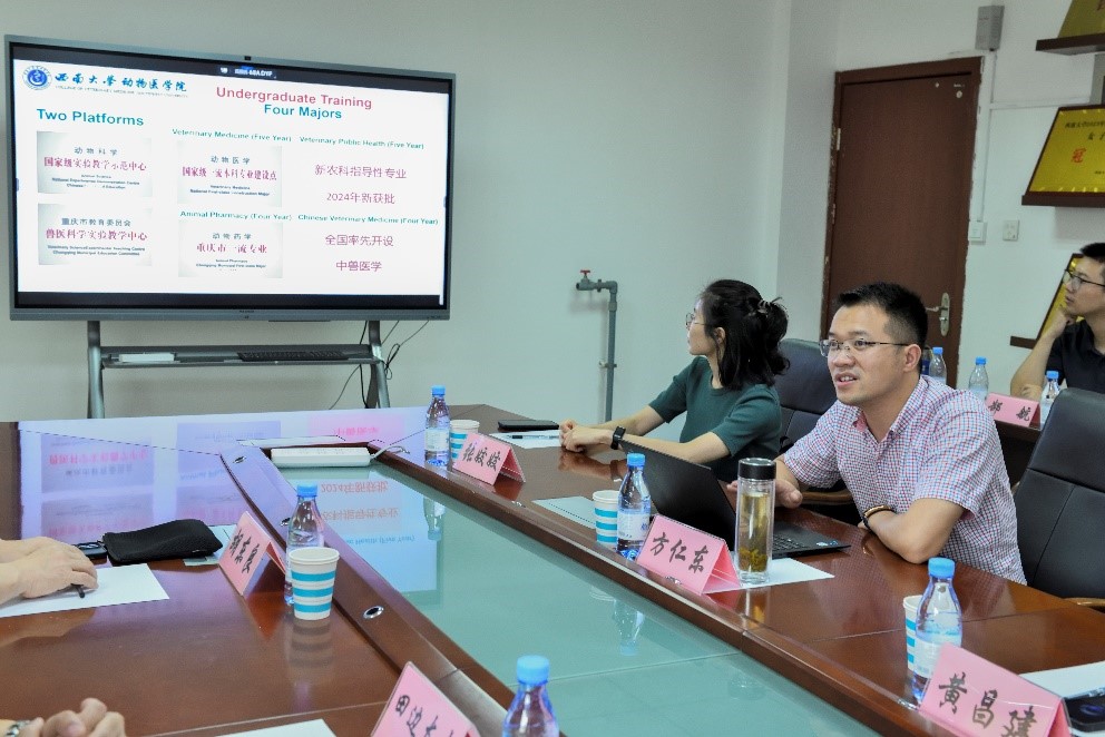 23日下午在动物医院210会议室举办了座谈交流会,黄昌建书记、方仁东院长、王鲜忠教授等与北里大学兽医学部的三位教授进行了交流。黄昌建书记对北里大学兽医学部专家一行的来访表示热烈欢迎,黄书记将于今年10月份带队学生赴北里大学进行短期交换。