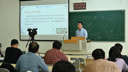 彭远义教授进行点评。他高度赞扬参赛老师扎实的专业基础和教学风采,老师们充分展示了自身的教学能力,做到授课内容创新,教学设计创新,教学方法创新。同时也指出在课程思政、PPT制作以及教学成果凝练上还存在不足。