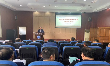 黄昌建书记首先对全体导师做了师德师风的专题培训,用鲜活的案例对全体导师做出警示教育,遵循良好师德师风是教书育人、实践育人的基本准则和底线。方仁东副院长领学了学校研究生培养与管理的系列新文件,对AV中文