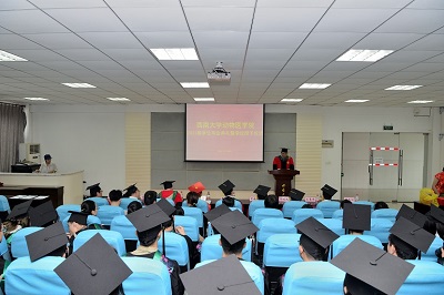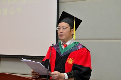 党委书记黄昌建,副院长宋振辉,教授王鲜忠、彭远义、王豪举、孔庆科上台为毕业生授位,并颁发证书。