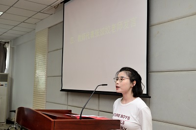 教师代表马琪老师和张姣姣老师在发言中向全院毕业生表示祝贺,寄语毕业生首先要不忘初心,无论将来你选择什么道路,在什么样的岗位工作,都不要忘记你的初心和梦想;其次要坚持学习,学习是工作生活中将自己的状态保持更新,不断提高的重要途径;最后要有责任担当,无论在工作还是生活中,一个人的责任和担当都是必不可少的品质。