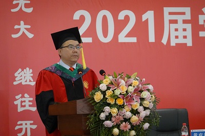 的历史、历年的发展和取得的成就,在同学们即将踏上新的征程之时,提出了三点希望:第一,志存高远、脚踏实地;第二,静水流深、有容乃大;第三,创新创业、追求卓越。