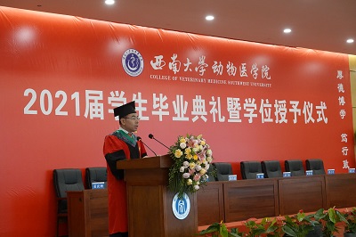 党委书记黄昌建,院长刘娟,副院长宋振辉,教授王鲜忠、彭远义、王豪举、孔庆科在主席台就坐。毕业年级辅导员李林园、毕业班班主任及全体2021届在碚毕业生参加典礼。毕业典礼由党委副书记、纪委书记黄庆洲主持。
