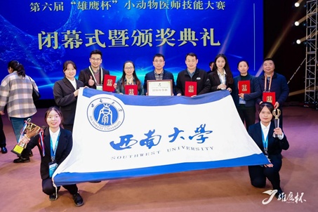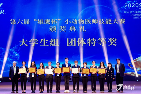 代表队斩获第六届雄鹰杯小动物医师技能大赛团体特等奖,并取得了总分排名全国第2的优异成绩。这是我校动医学子连续第三年获得该大赛特等奖,我校也是该大赛举办以来唯一一所三年蝉联特等奖的高校。同时,贺晚秋同学荣获血涂片制备单项第1名,罗练同学荣获兽医新星奖。江莎、徐玉薇、张德志老师荣获优秀辅导教师奖。