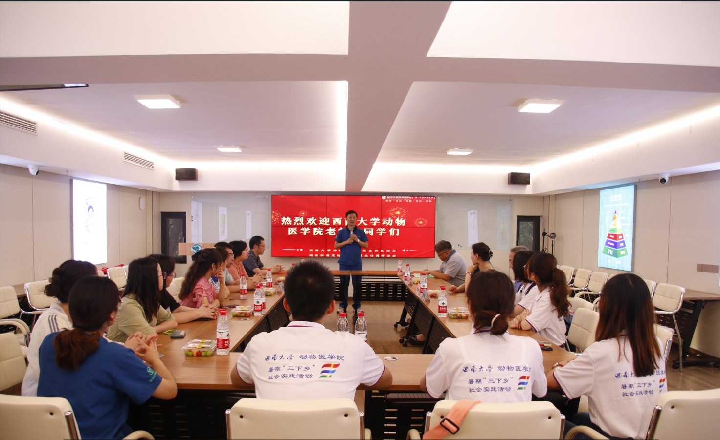 目前的发展状况,瑞派华茜宠物医院的领导代表从不同角度对宠医行业的现状进行分析指导,实践团成员们积极参与座谈会、提出自己的问题与见解。