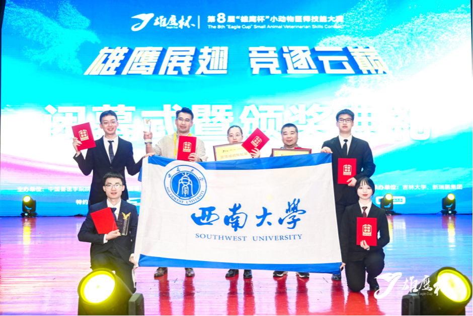 最终,我校学子不负众望,再创辉煌,从全国117所农业高校中脱颖而出,最终以总分第一名的骄人成绩勇夺得第八届“雄鹰杯”小动物医师技能大赛大学生组“团体特等奖”。这也是我校连续第五次蝉联该项赛事特等奖。其中,胥辉豪、张德志、江莎老师获得“优秀辅导教师特等奖”,胥辉豪老师作为优秀辅导老师代表在大赛闭幕式上进行发言;程钏同学获得“兽医新星奖”;我校获得“最佳组织院校奖”。我校在刷新成绩纪录的同时,再次彰显了AV中文
