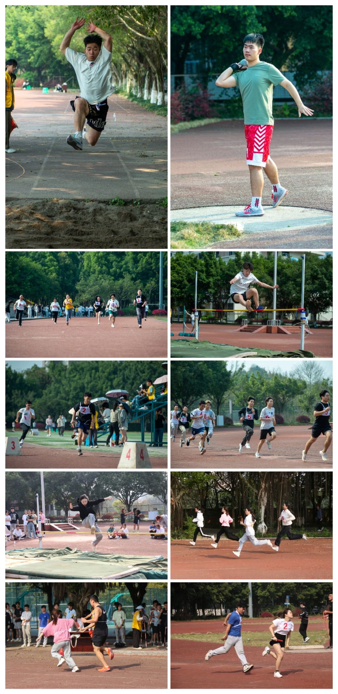 当天,各赛事紧锣密鼓、有条不紊地进行。站定、蓄力、掷球,振臂划空,用尽全力;助跑、跨步、起跳,纵身一跃,无惧山海。跑道上,枪声是赛道的加速器,心跳是信念的内燃机,心中目标笃定,脚下步履生风——拼搏的姿态是对自我的勇敢超越,亦是对青春的热切诘问。