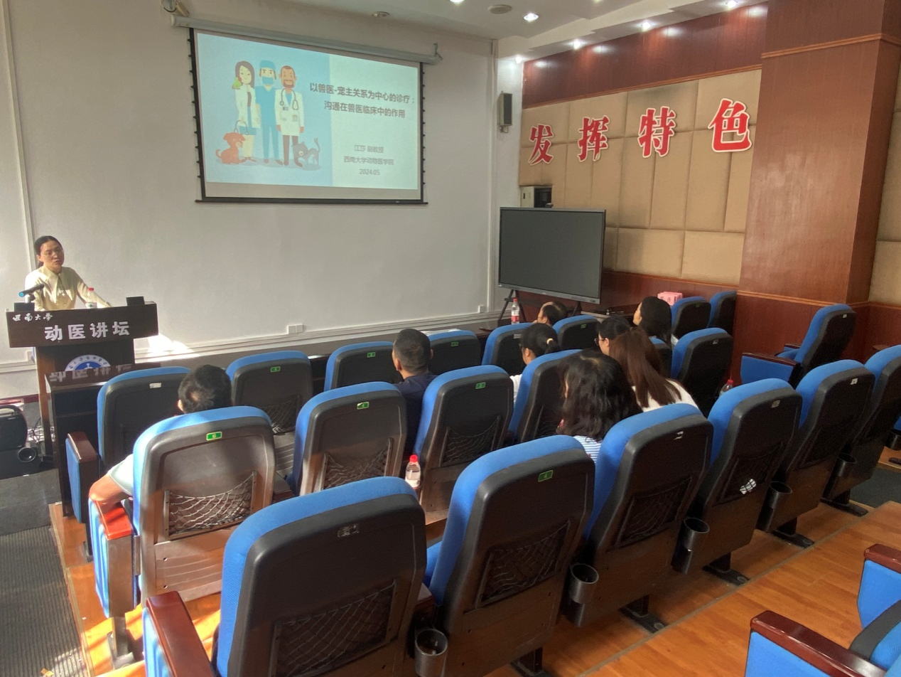 江莎副教授为学员进行了《宠物门诊沟通交流技巧》专题报告。