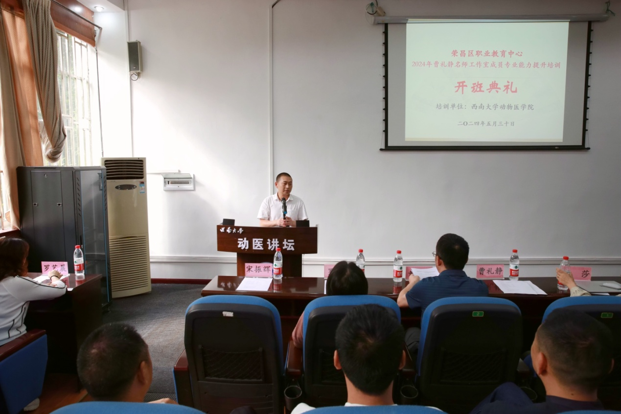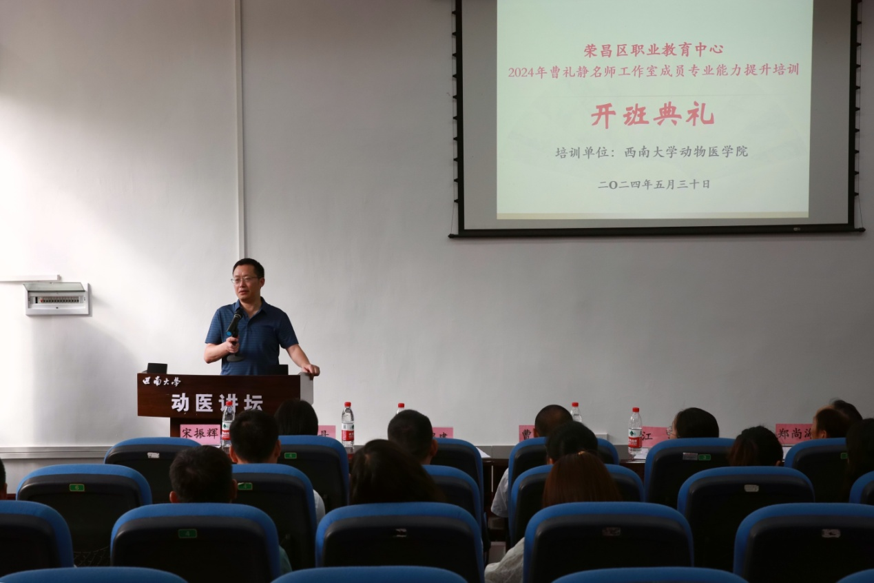 充分沟通,计划举行“曹礼静名师工作室”成员专业能力提升培训班,开班仪式于5月30日,在3110报告厅顺利举行,荣昌区职业教育中心书记曹礼静、AV中文