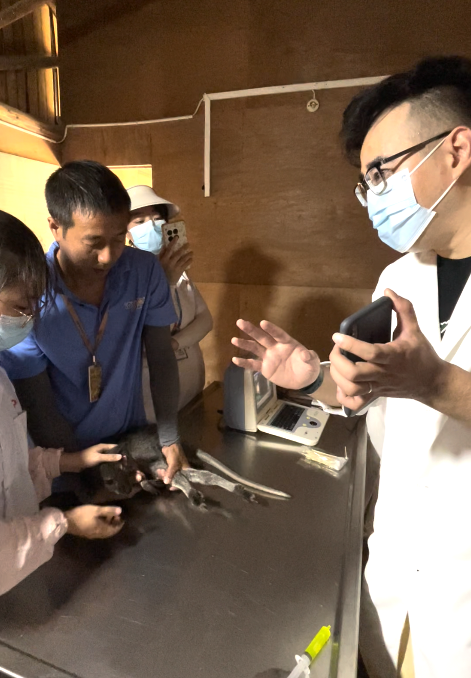 动物医院胥辉豪院长接诊后,马上带领临床研究团队前往动物园进行现场诊治,并借助专用眼科设备对袋鼠双眼进行了全面眼科检查,确认了左眼的病情(角膜穿孔,晶状体前脱位,继发性白内障),拟定了治疗方案。