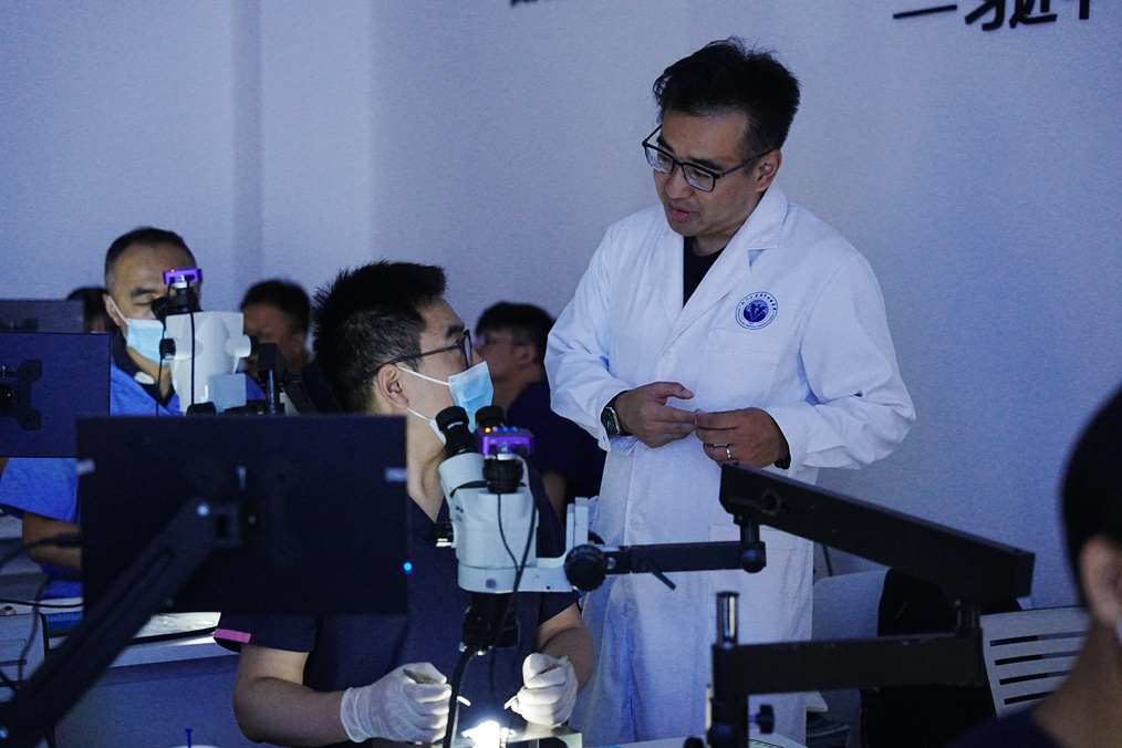 胥辉豪作为中国畜牧兽医学会小动物医学分会眼科专家组组长,同时也是中国兽医协会首批获得认证的兽医眼科专科医师。本次培训吸引了来自全国各省市300余名临床工作者的踊跃报名。胥辉豪主要进行了小动物角膜疾病及显微手术技术的专题培训。胥辉豪首先介绍了我国兽医眼科专科的现状与发展,对常见角膜疾病的理论知识进行了详细的讲解,现场指导了眼科基础临床检查与显微镜下缝合技术,并在整个培训过程中与学员们进行了广泛的互动与交流。