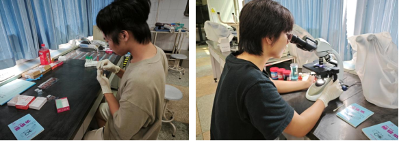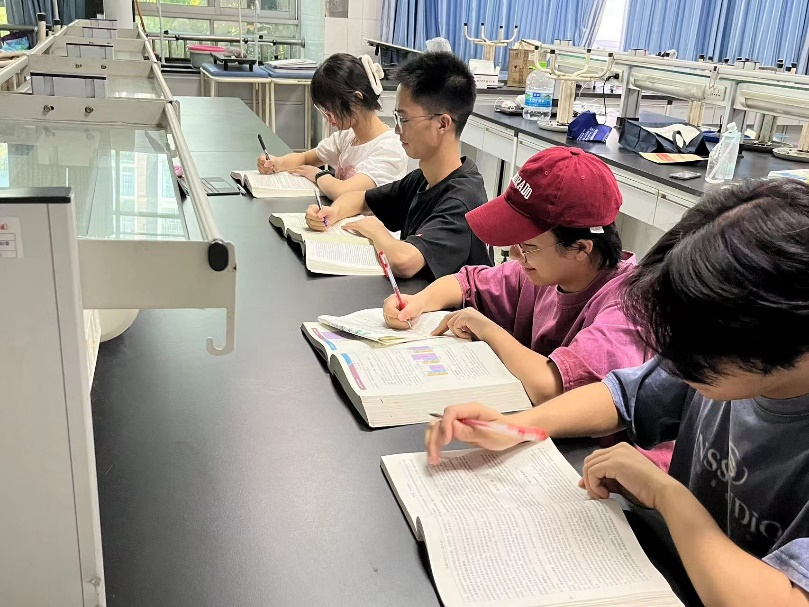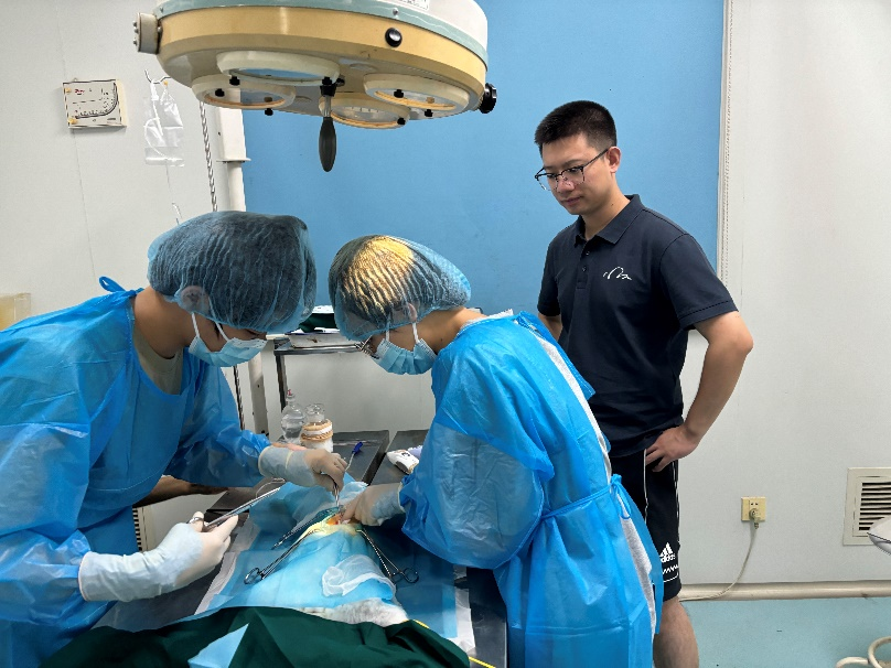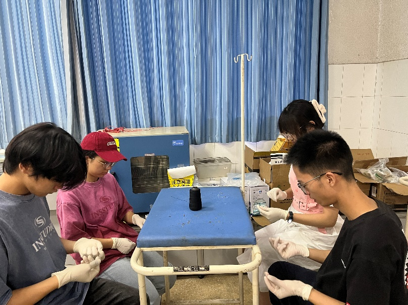 师生放弃暑假休息时间,参赛选手在江莎、张德志和郜航老师的指导下开始了每天数小时高强度专项训练,包括血涂片、单手打结和兔胃切开术等实操技能,以及小动物疾病相关理论学习。重庆40度高温天气也难挡学生们学习的热情,专项训练从早晨8:30开始,首先进行1-2小时打结练习,接着进行血涂片的重复练习,下午进行兔胃切开术的训练,并进行术后总结和复盘。晚上进行理论学习。通过这种高强度的备赛训练,学生们不仅在理论知识和实操能力上得到了显著提升,而且在心理素质和团队协作方面得到了很好的锻炼。这一系列的训练让同学们更深刻体会到了兽医工作的艰辛与伟大,进一步坚定了他们为小动物健康事业贡献力量的决心。