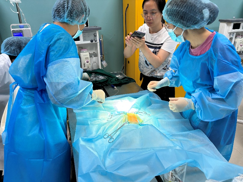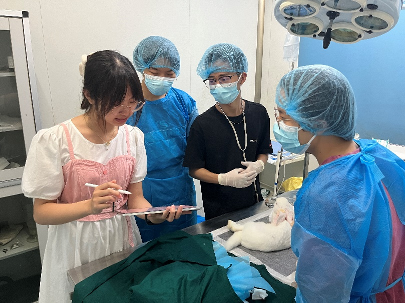 江莎、郜航指导兔胃切开术