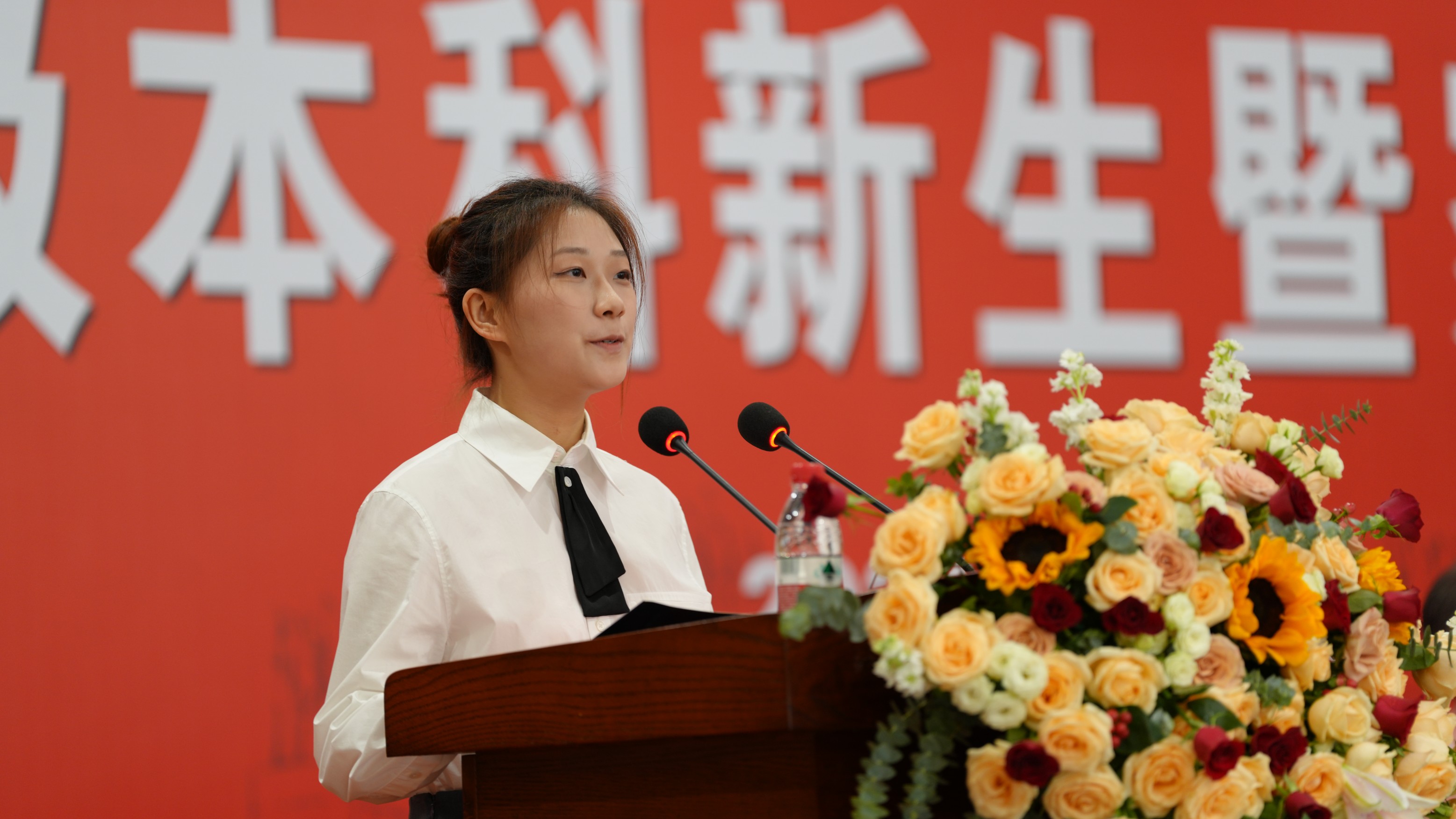 接着教师代表张兴翠老师进行发言。她希望新生能明确目标做好大学规划,抓住机遇迎接每次挑战,保持心态积极乐观生活,书写无愧于时代的青春之歌和人生华章,成为堪当民族复兴重任的时代新人。