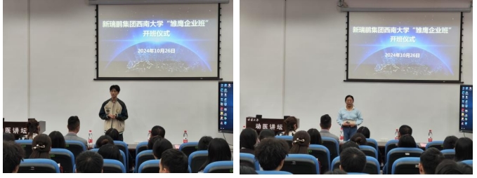 与新瑞鹏宠物医疗集团联合举办的雏鹰企业班开班仪式在3110报告厅举行。佳雯宠物医院创始人、新瑞鹏宠物医疗集团浙闽二区总经理、管培生项目组总负责人谢作缎,新瑞鹏高级内训师、新瑞鹏浙闵二区市场总监、管培生项目组课程负责人招梦利,新瑞鹏浙闵二区人力资源部负责人、管培生项目组管理负责人张素美,AV中文