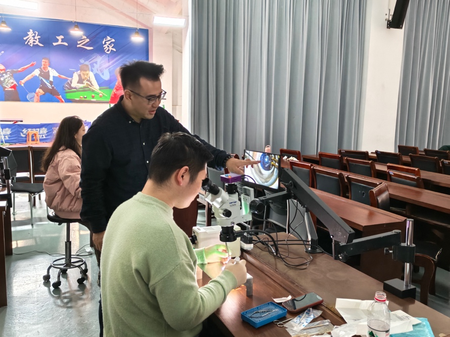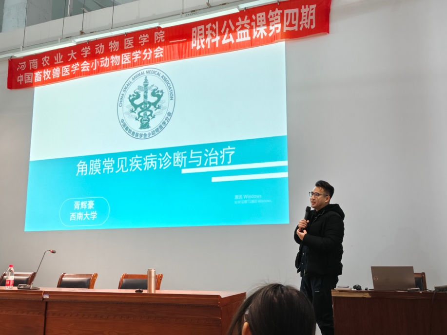 本次培训吸引了来自全国50余名临床工作者的踊跃参加。胥辉豪进行了犬猫角膜疾病、显微手术技术和眼科临床检查的专题培训,期间讲授了犬猫角膜疾病的理论知识,现场指导了学员显微镜下眼科手术操作技术以及眼科基础检查的动手操作,并在整个培训过程中与学员们开展了广泛的互动与交流。