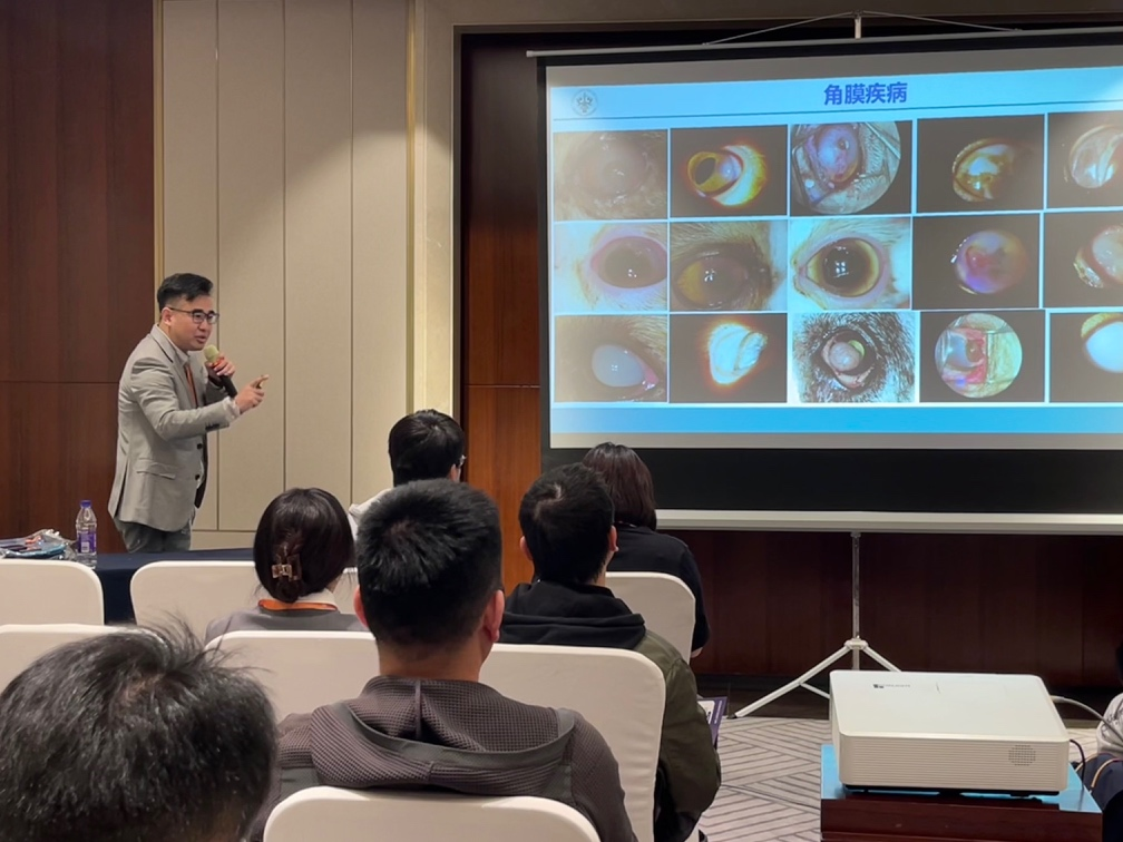 AV中文胥辉豪副教授,作为大会副秘书长在此次大会中围绕“犬猫角膜手术成功要点”与“犬猫葡萄膜炎诊治要点”两个主题进行了专题讲座,并同时对“角膜急症处理原则”的显微手术实操进行了讲解与培训,为广大临床医生提供了宝贵的临床知识与经验。同时,胥辉豪作为AV中文