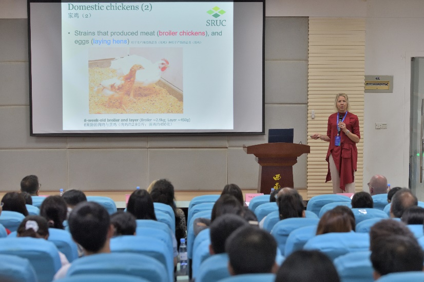 Cathy Dwyer教授以“如何衡量动物福利?”为题作主旨报告,系统阐述了动物福利的内涵、评估意义、关键指标与技术手段,并分享了在动物行为与福利监测方面的最新研究成果。报告后,她与青年学者就动物行为需求、福利与可持续生产之间的协同关系,以及动物福利与人类生活的密切联系等问题展开了深入讨论。