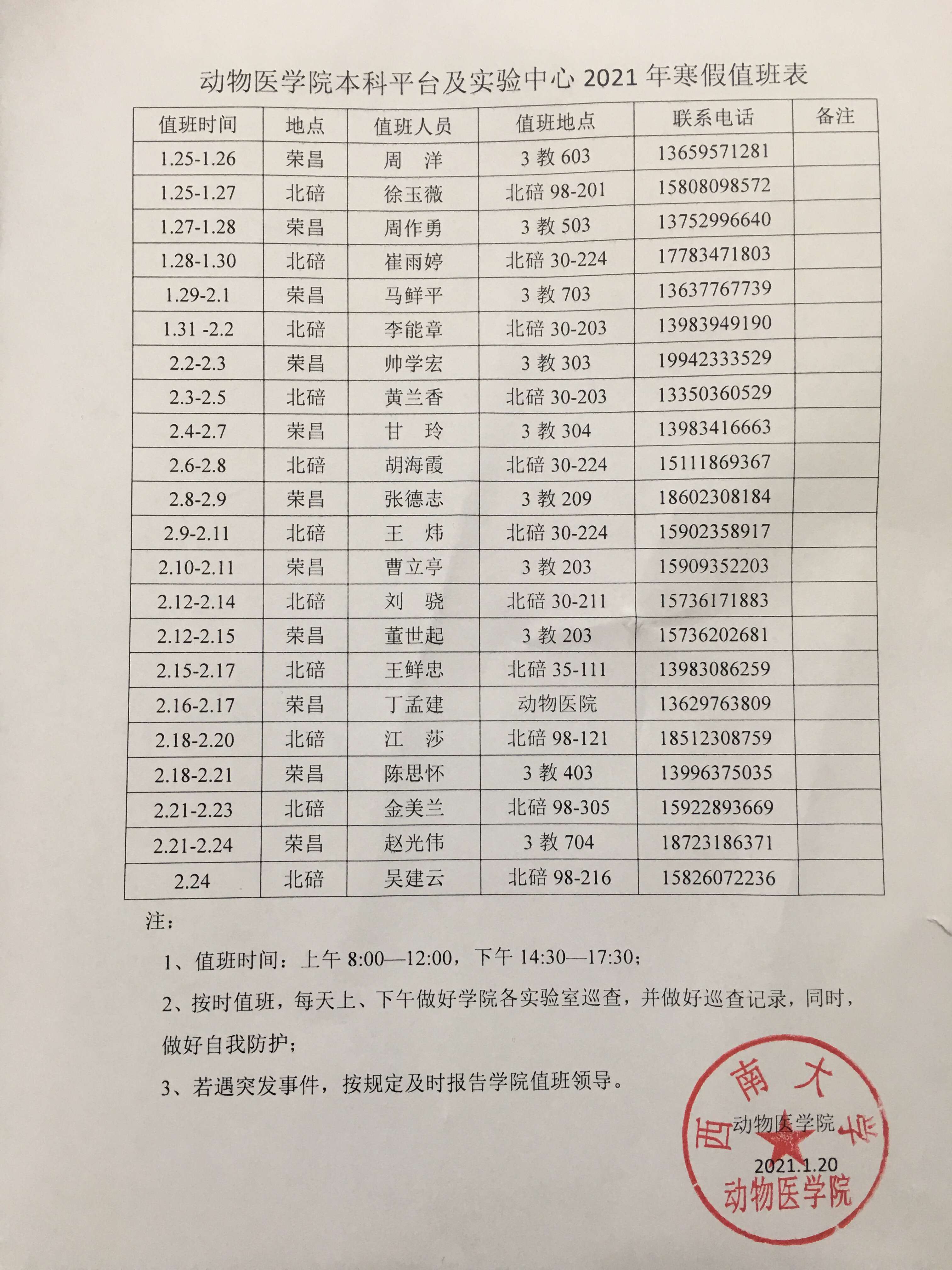AV中文 本科平台及实验中心2021年寒假值班安排