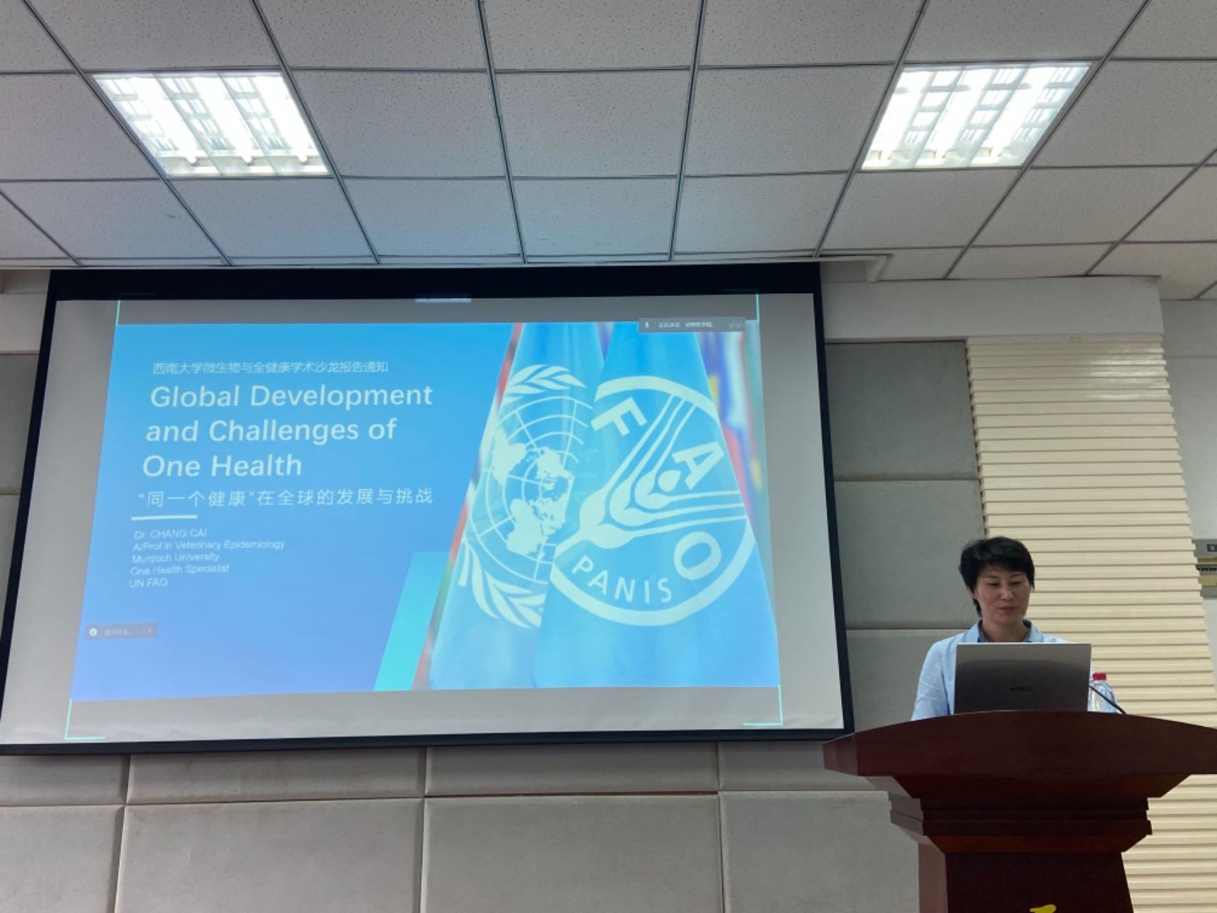 师生对同一个健康有了初步的了解。接着蔡畅分享了其在联合国粮农组织中的工作经历,主要包括协调各国的One Health工作、制定流行病政策、分析全球健康数据及智能化联合国数据库,为全球公共卫生贡献出一份力量。报告后蔡畅与师生进行了深入的互动交流,解答了大家关于ONE HEALTH的疑问,学术沙龙现场氛围热烈。本次报告不仅有助于AV中文