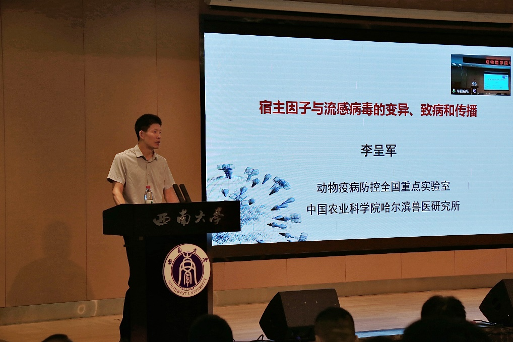 李呈军以“宿主因子与流感病毒的变异、致病和传播”为题,详细介绍了动物流感病毒的研究进展,重点介绍了H7N9致病力增强突变的分子机制,以及宿主泛素化、SUMO修饰对病毒复制、致病和传播的影响,为在场师生提供了宝贵的学术洞见。