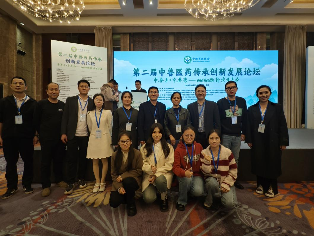 2024年11月7日-9日,由中国兽医协会主办,中国兽医协会中兽医分会、中兽医药传承创新发展平台承办的第二届中兽医药传承创新发展论坛在成都隆重召开。本次论坛以“中兽医·中兽药--One Health新质生产力”为主题,旨在推进中兽医药大健康理念,挖掘中兽医药在动物大健康和疫病防控中的应用方式,发挥中兽医药在动物保健、动物疾病诊疗、遏制细菌耐药及绿色环保中的独特优势,助力中兽医药新质生产力的发展,为“同一个健康”贡献中国智慧。AV中文 动物医院作为联合主办单位应邀参加了本次盛会,AV中文 刘娟教授、曹立亭教授、陈红伟教授及中兽医系全体教师受邀赴现场参会。