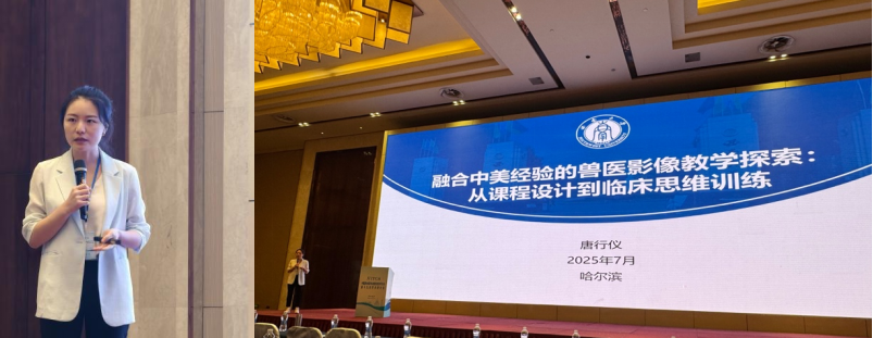 唐行仪副教授应邀参会,并作题为《融合中美经验的兽医影像教学探索》的学术报告。报告系统梳理了《兽医影像诊断学》在顶层设计、教学方法及学生临床思维培养等方面的改革与实践,并通过对中美兽医教育体系的深度比较,分享了“国际理念本土化”的实践经验,获得与会专家的广泛关注与积极反馈。